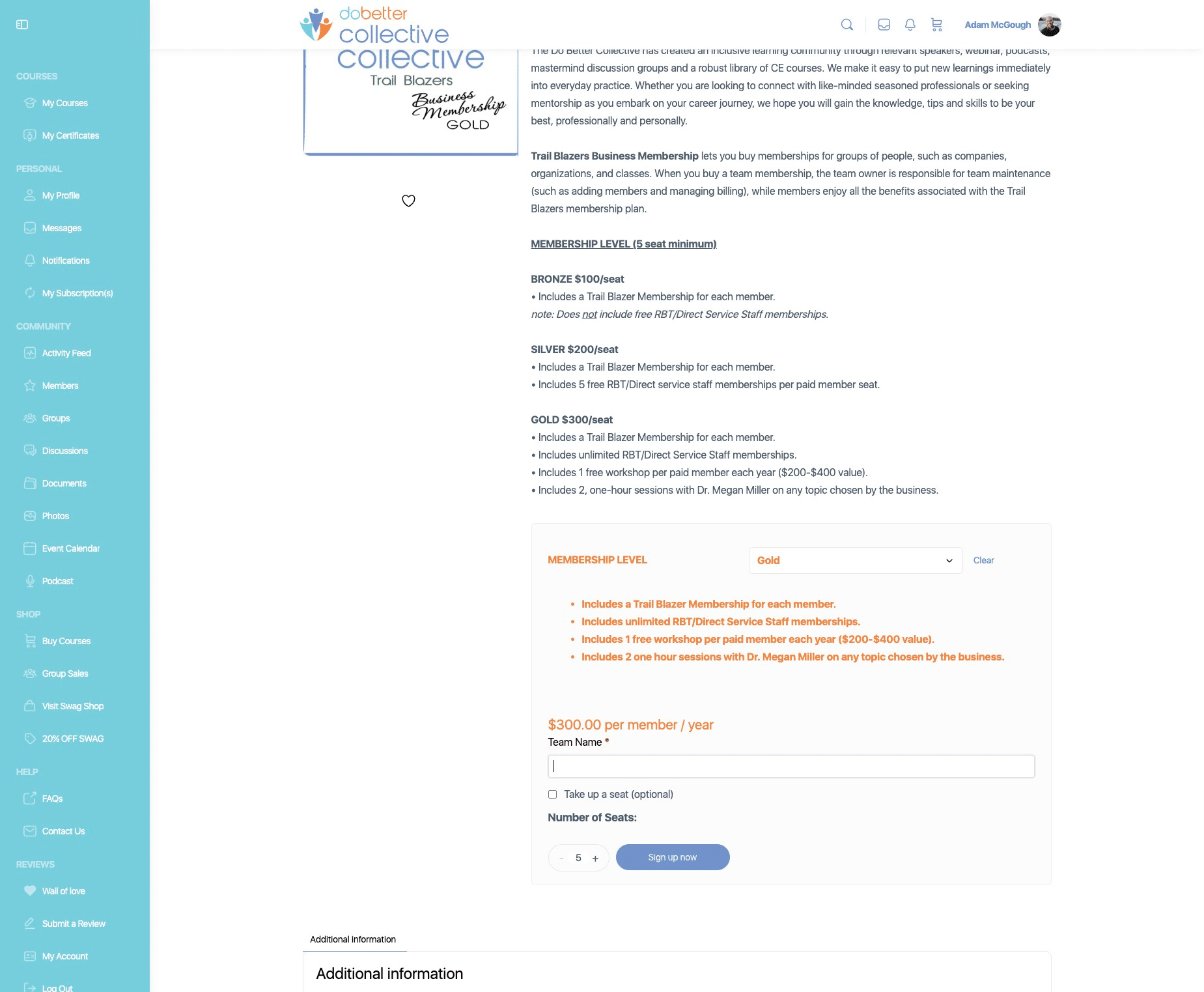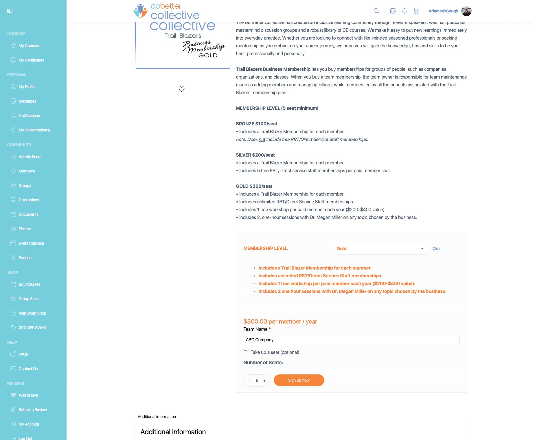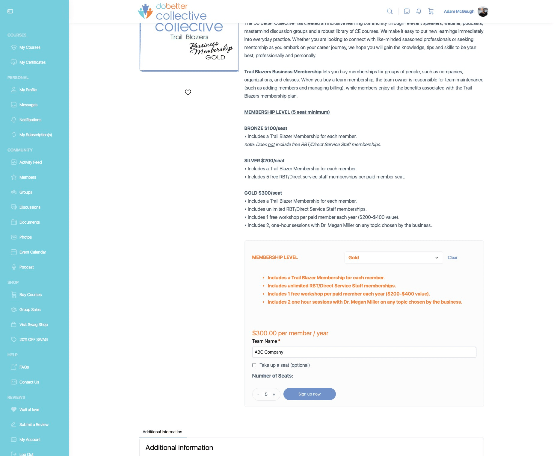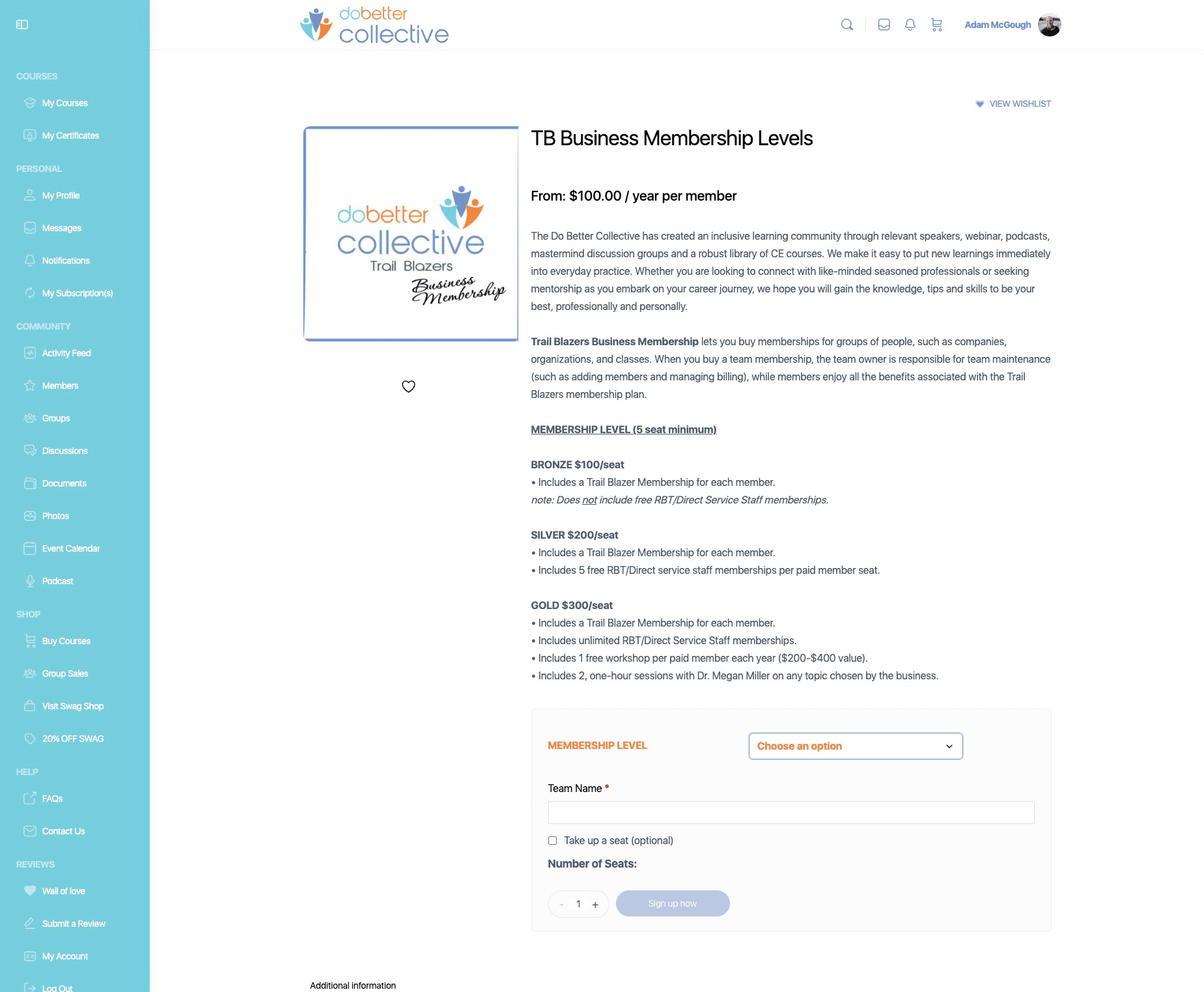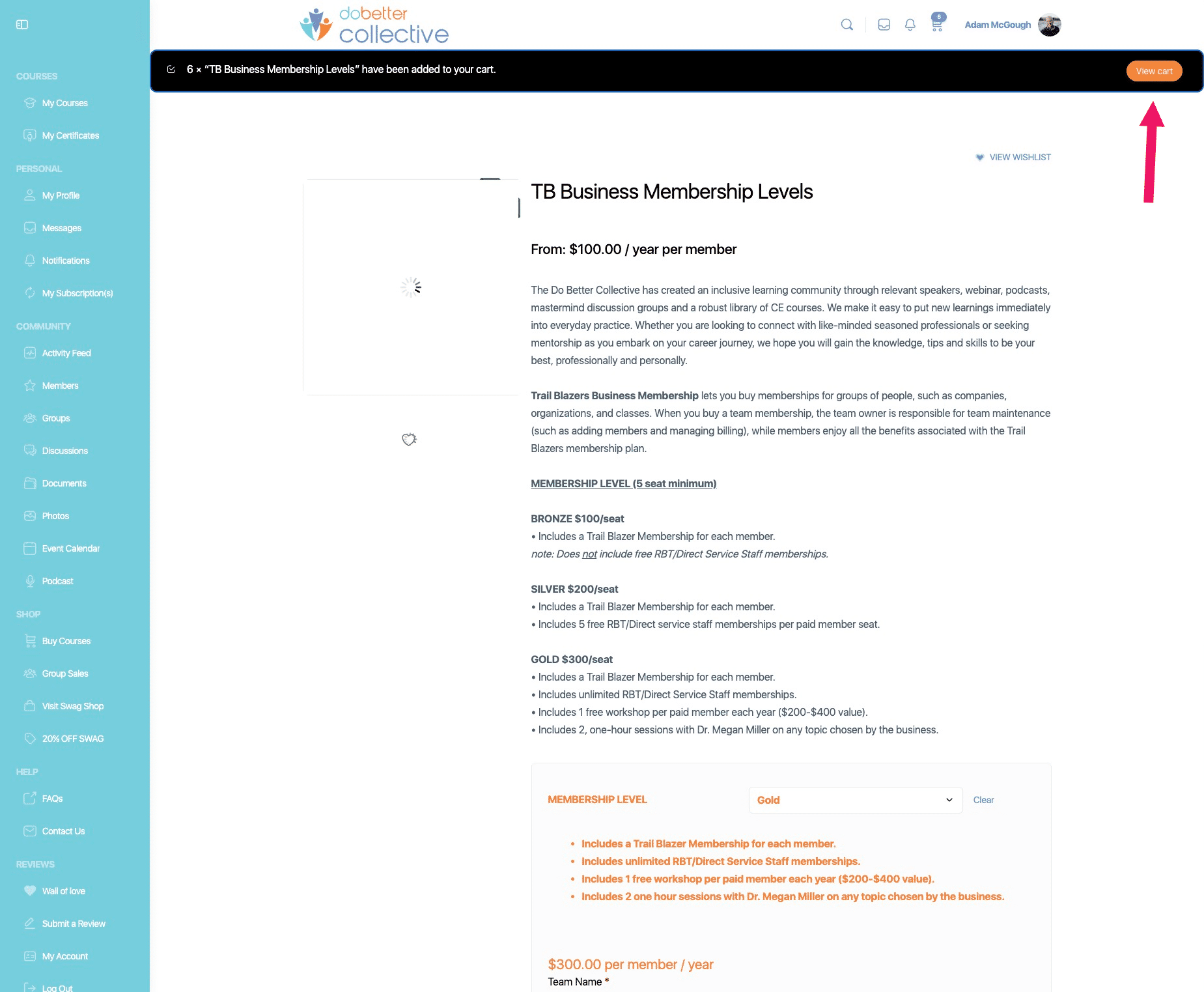 Click on "+" to add additonal seats. Minimum seat purchase for a Business Membership is 5 seats.