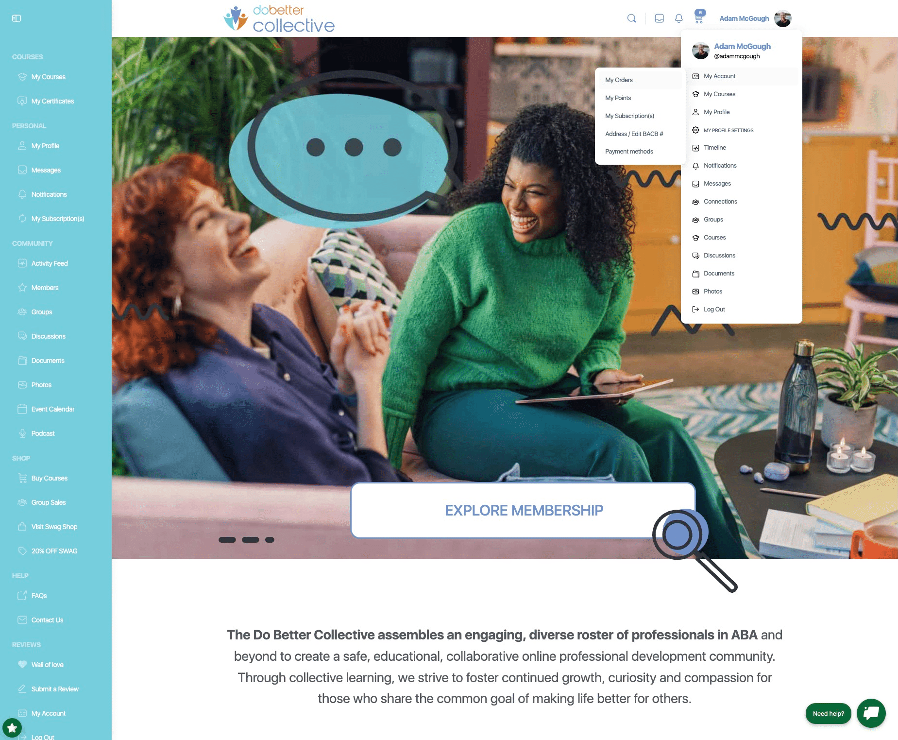 How to access your Business Membership account on the Do Better Collective website.