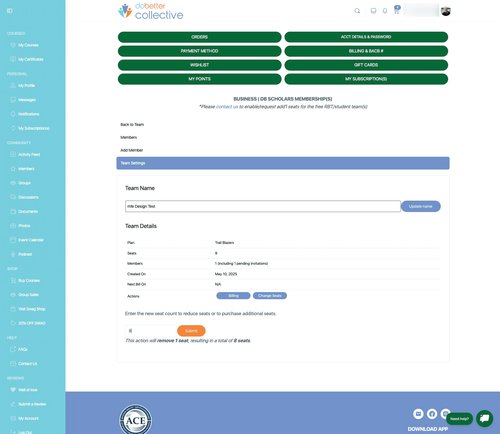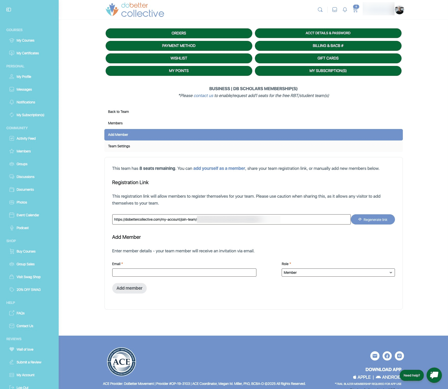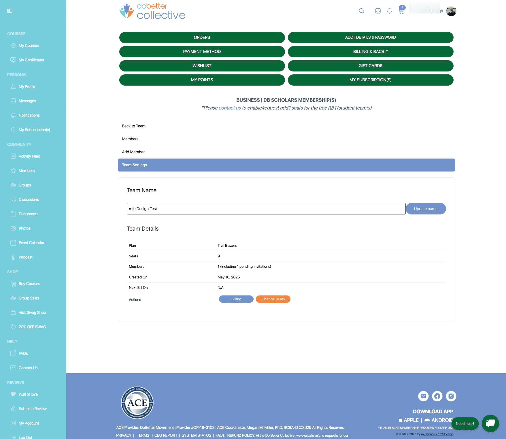 Navigate to https://dobettercollective.com/my-account/teams/